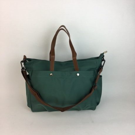 TEAL GREEN TOTE BROWN HANDLES